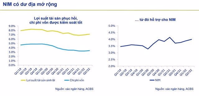 một diễn biến khác, giới phân tích kỳ vọng lợi nhuận nhóm ngân hàng sẽ có mức tăng trưởng cao trong nửa cuối năm 2022 với 2 luận điểm gồm NIM của các ngân hàng còn dư địa mở rộng bởi trong đợt nới room vừa qua, hạn mức cấp thêm toàn ngành chỉ khoảng 2%; áp lực trích lập dự phòng của các ngân hàng có xu hướng giảm sau khi các ngân hàng đã trích lập mạnh tay cho nợ cơ cấu do COVID-19 trong năm 2021.