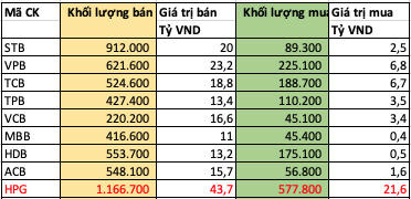 Nhóm các cổ phiếu ngân hàng, ACB, STB, VPB, CTG, HDB, MBB, TPB, OCB tiếp tục bị bán ra số lượng lớn. Trong đó STB tiếp tục được "ghi danh" là một trong những cổ phiếu nhóm ngân hàng bị bán ra nhiều nhất. Trước đó ngày 18/5 cũng có gần 2 triệu cổ phiếu STB bị bán ra.