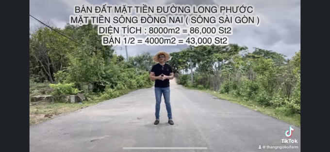 Theo đó, ông Thắng cho biết, bán 4.000m2 trong mảnh đất có diện tích 8.000m2 của mình “Đây là mảnh đất hiếm hoi, có một vị trí đắc địa tại mặt đường Long Phước, quận 9, TP. Thủ Đức, TP. HCM. Đồng thời, mảnh đất còn có mặt tiền nhìn ra sông Sài Gòn. Từ vị trí mảnh đất đến cao tốc chỉ 800m. Do đó, rất phù hợp xây dựng biệt thự ven sông hoặc sinh doanh khách sạn, nhà hàng,...”.