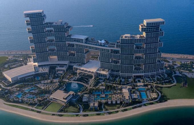 Đại diện khách sạn cho biết, trong khi các khu nghỉ dưỡng khác thường xây dựng theo chiều ngang, Atlantis được xây dựng theo chiều dọc, tạo nên sự độc đáo khi du khách có thể dễ dàng ngắm toàn cảnh đảo Cọ và đường chân trời của Dubai. Độ cao nổi trội này cũng mang lại cho các phòng sự riêng tư hiếm có.
