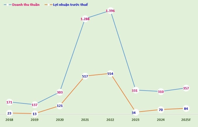 Nhìn lại kết quả kinh doanh năm 2024, Khải Hoàn Land ghi nhận 310 tỷ đồng doanh thu thuần, giảm 6,3% so với năm 2023 và 70 tỷ đồng lợi nhuận trước thuế, tăng 105%.