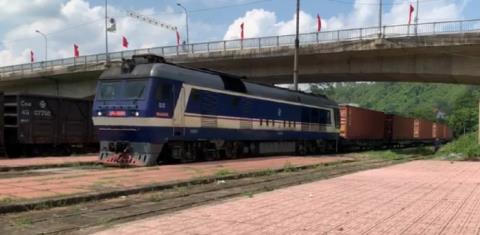 Chiều 29/5, đoàn tàu container liên vận quốc tế tuyến Quảng Đông - ASEAN về đến ga Đồng Đăng để làm các thủ tục hải quan cho hàng đi tiếp đến ga Yên Viên.