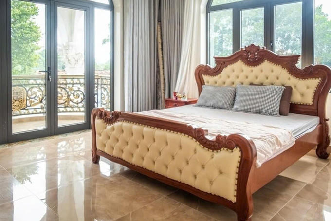 Ngoài ra, tầng 2 của biệt thự gồm hai phòng ngủ rộng rãi và một phòng thờ, với phòng ngủ có ban công rất thoáng đãng, mang đến không gian thư giãn hoàn hảo cho gia đình nghệ sĩ.