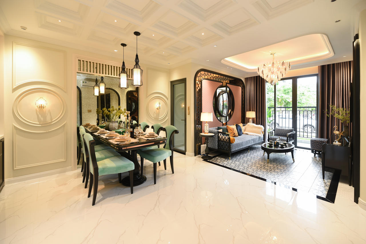 Phong cách Tân cổ điển hay Indochine gắn liền với những căn hộ cao cấp góp thêm một điểm nhấn mới mẻ cho chuỗi nhà mẫu Phú Đông Group. Tại đây, khách hàng được trải nghiệm về sự kết hợp độc đáo của màu sắc và nội thất, để không gian sống trở nên tràn đầy cảm hứng và thể hiện được dấu ấn cá nhân của gia chủ.