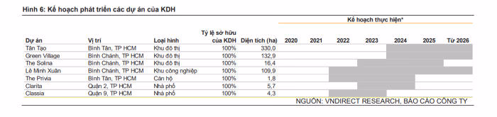 Khác với giai đoạn trước đây, CTCP Đầu tư Kinh doanh Nhà Khang Điền (mã chứng khoán: KDH) chủ yếu tập trung vào các dự án biệt thự/nhà phố và chung cư quy mô dưới 10 ha. Chứng khoán BSC cho biết, Khang Điền đang bắt đầu đẩy mạnh “mở khóa” quỹ đất khu đô thị với quy mô trên 100 ha. Hiện, công ty đang có quỹ đất 680 ha tại khu vực nội đô TP HCM đang chờ được “mở khóa”.