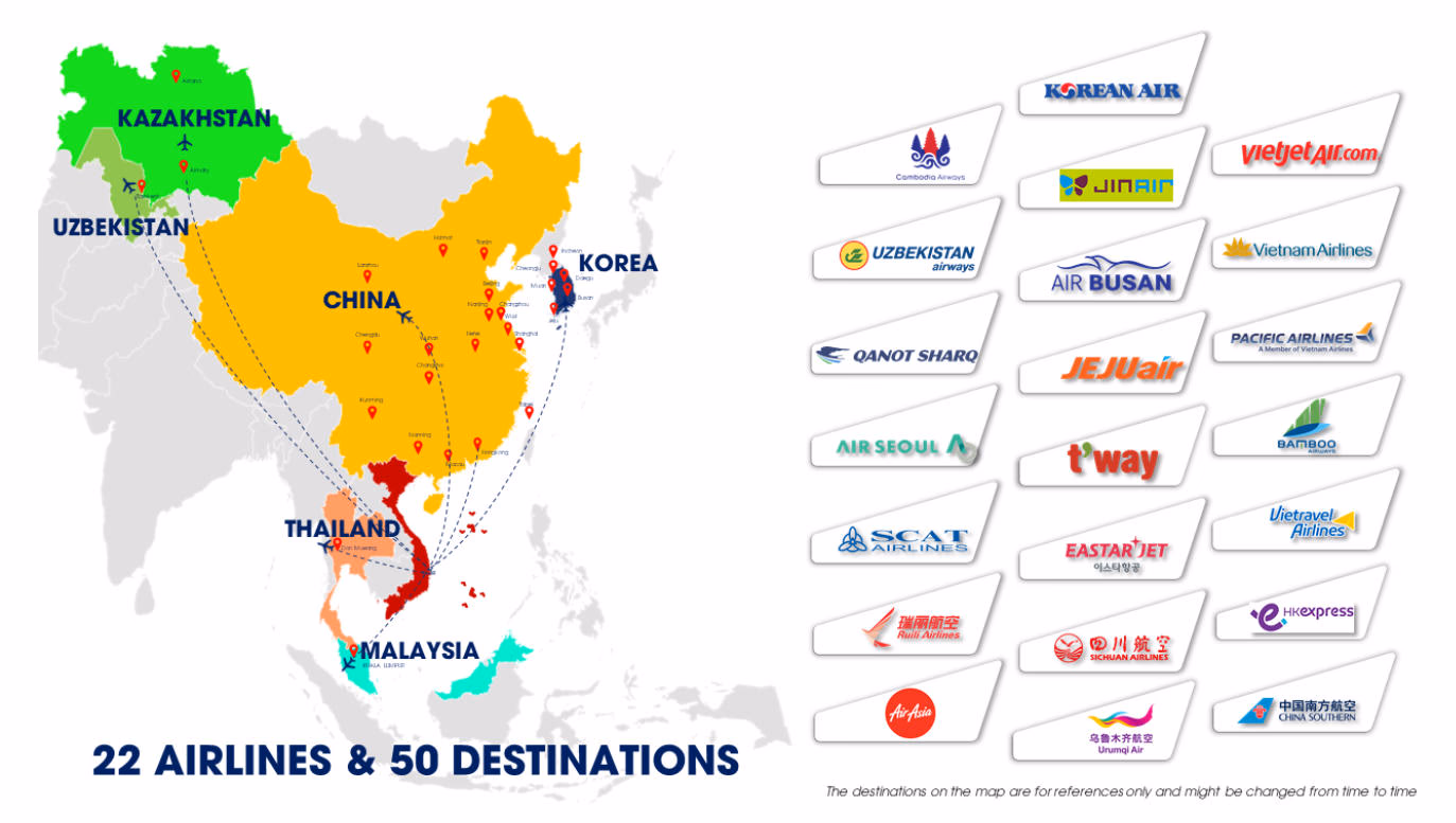 Là cửa ngõ đón hơn 80% khách quốc tế đến Việt Nam, hàng không đóng vai trò then chốt trong việc mở rộng khai thác thị trường du lịch quốc tế. Nhờ hạ tầng hàng không ngày càng hoàn thiện, Khánh Hoà đã phát triển mạnh mẽ trong những năm gần đây với lượng khách quốc tế đến thành phố biển tăng nhanh. Điều này không chỉ nâng tầm du lịch Khánh Hòa mà còn giúp nơi đây từng bước trở thành một đô thị du lịch tầm cỡ quốc tế.