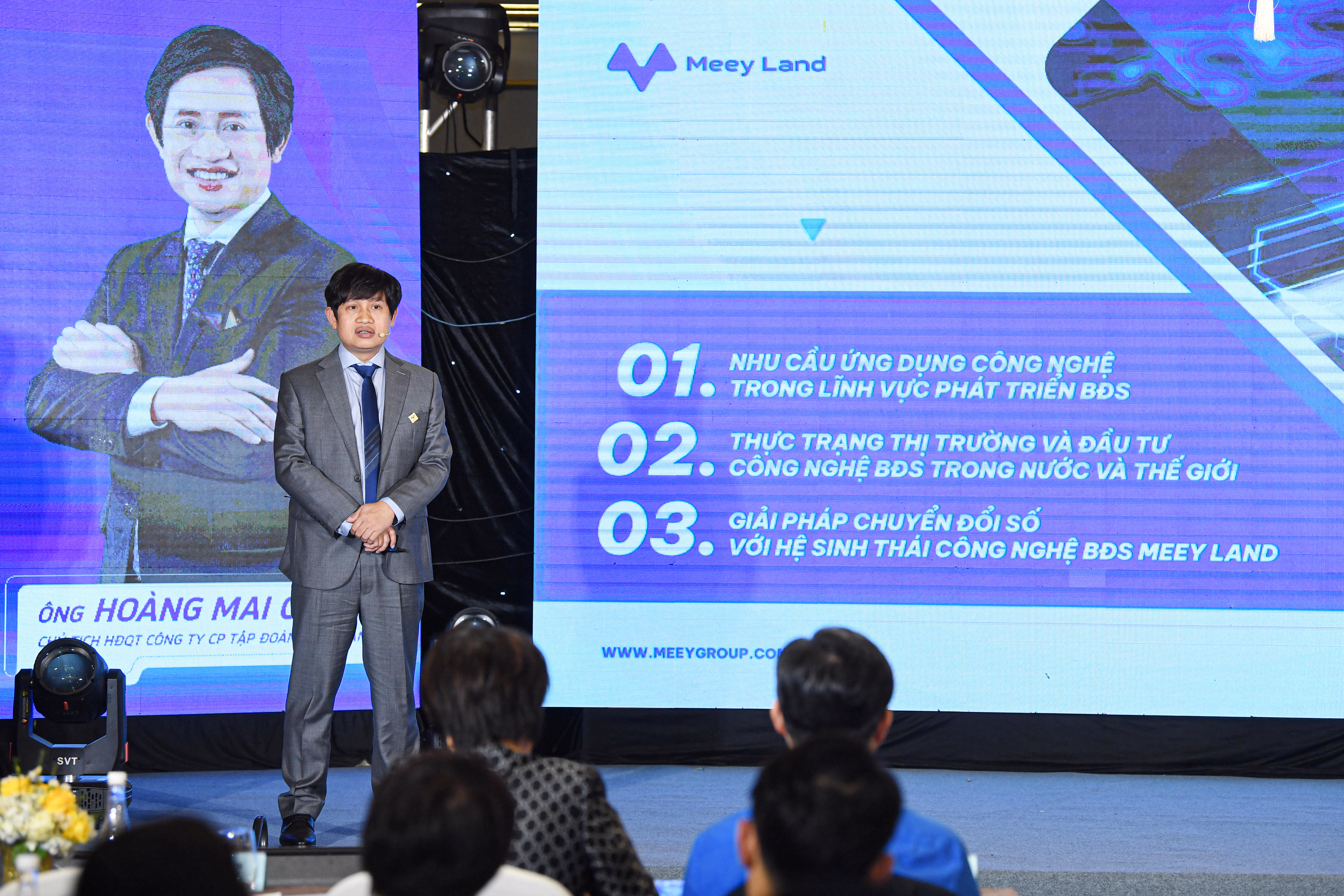 “Hệ sinh thái Công nghệ - Tài chính bất động sản Meey Land của chúng tôi bao gồm 26 sản phẩm đặc thù phục vụ riêng biệt cho ngành Proptech - công nghệ bất động sản có các ứng dụng như meeyland.com, Meey Land App, Meey Map, Meey CRM…; Fintech - công nghệ tài chính với Meey Bank, Meey Pay, Meey Payment; Propstock - chứng khoán hóa bất động sản có Meey Trading, Meey Invest, Meey Auction; Data Center gắn liền với Meey ID. Meey Land có nền tảng các sản phẩm công nghệ đa dạng cùng kiến trúc hệ thống dữ liệu tối ưu được sử dụng trên nền tảng định danh ID và bản đồ số, sử dụng các công cụ AI để phân tích dữ liệu nhằm xây dựng mô hình cho các hạng mục giá trị gia tăng trong hệ sinh thái. Chúng tôi tin tưởng rằng, Hệ sinh thái Meey Land sẽ là công cụ đắc lực, góp phần giải quyết những nỗi đau của thị trường trong tương lai”, ông Hoàng Mai Chung nhấn mạnh.