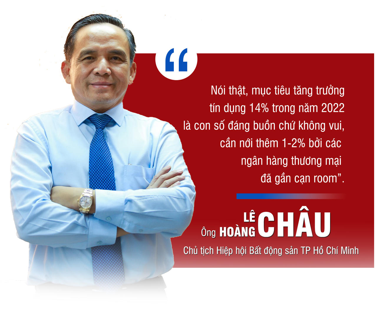Theo ông Lê Hoàng Châu - Chủ tịch Hiệp hội Bất động sản TP Hồ Chí Minh (HoREA), động thái nới tín dụng của Ngân hàng Nhà nước chưa hẳn là tin vui vì hạn mức tín dụng này chỉ là con số còn lại trong mức trần 14% của năm 2022.