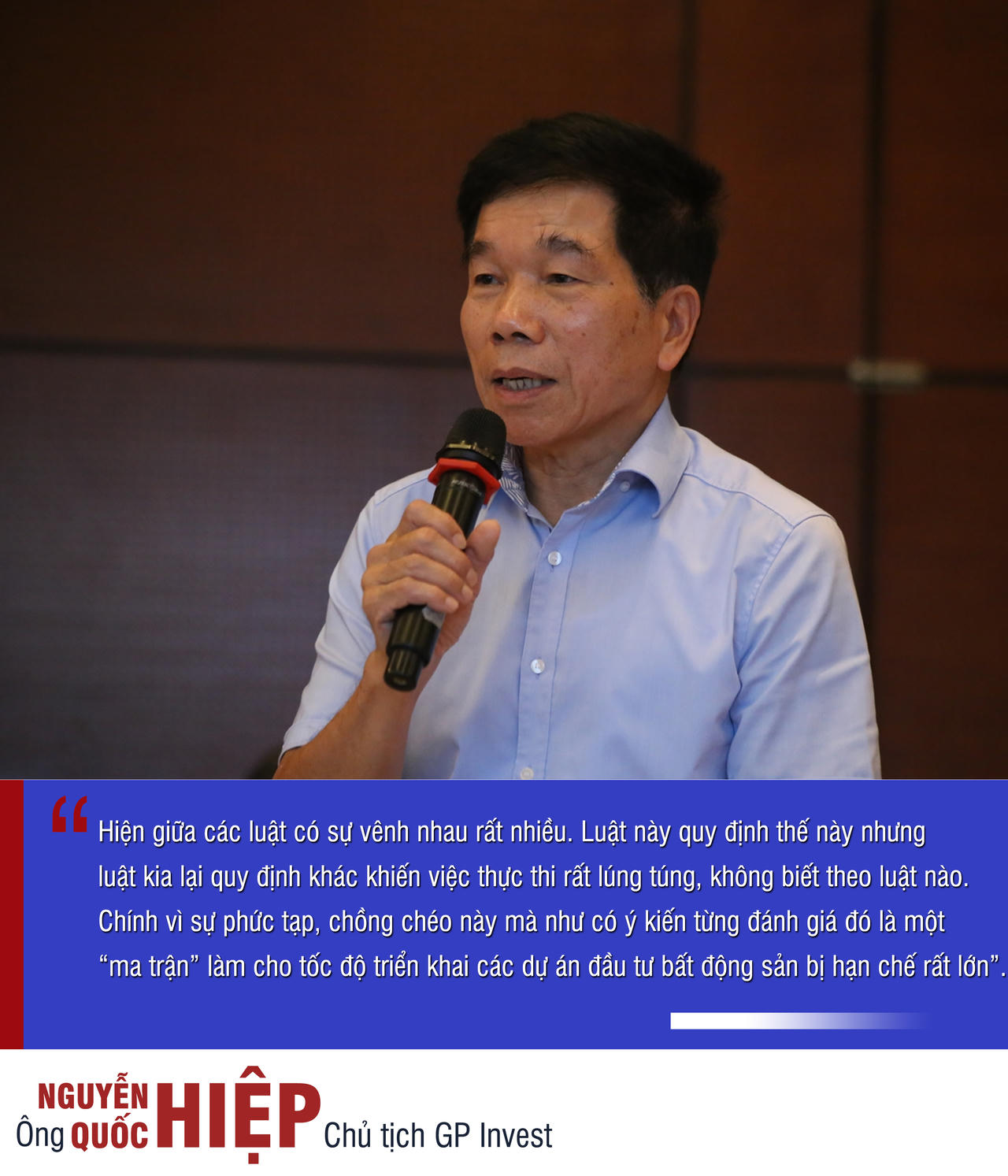 Dưới góc độ doanh nghiệp, ông Nguyễn Quốc Hiệp, Chủ tịch GP Invest phân tích thêm, BĐS là một ngành kinh doanh phải hoàn thành các thủ tục pháp lý phức tạp nhất so với các ngành nghề khác khi phải chịu sự tác động điều tiết của 12 luật khác nhau: Luật Đất đai, Luật Nhà ở, Luật Kinh doanh bất động sản, Luật Xây dựng, Luật Quy hoạch, Luật Đầu tư, Luật Đấu thầu, Luật Phòng cháy chữa cháy….