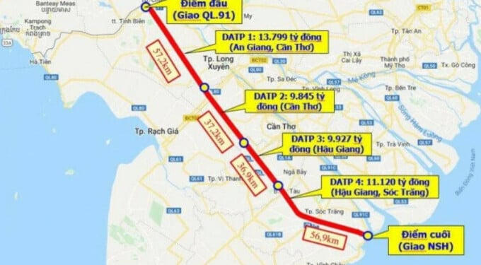 Theo đó, dự án đường bộ cao tốc Châu Đốc - Cần Thơ - Sóc Trăng dài hơn 188km, đi qua địa bàn các tỉnh, thành phố gồm: An Giang, Cần Thơ, Hậu Giang và Sóc Trăng.
