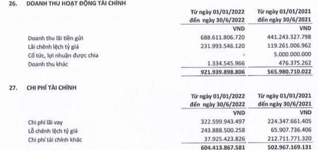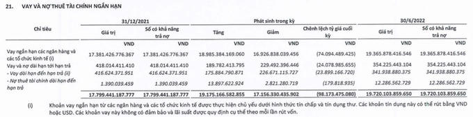 Tính đến 30/6/2022 FPT ghi nhận khoản dư vay ngắn hạn tại ngân hàng hơn 19.700 tỷ đồng và mang tiền đi gửi tiết kiệm các kỳ hạn khác nhau gần 23.000 tỷ đồng.