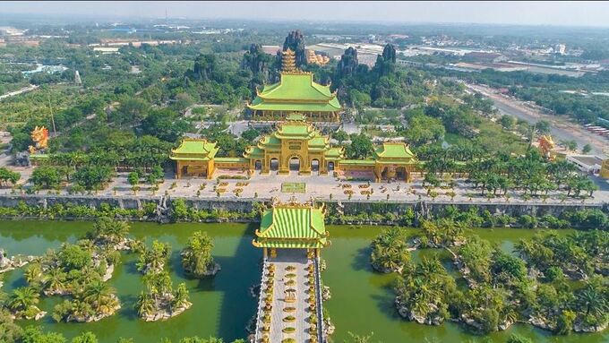 3. Sở hữu đền thờ lớn bậc nhất Việt Nam với diện tích hơn 5.000m2, được xây dựng theo lối kiến trúc cổ thời Nhà Lý với mô típ vuông tròn, nổi bật với các phù điêu, vật dụng thờ cúng được dát vàng 24K.