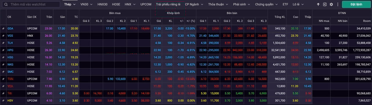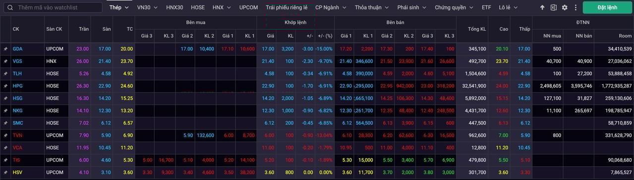 Không chỉ HPG, các cổ phiếu khác cũng đồng loạt lao dốc sau thông tin bất lợi từ Bộ Thương mại Mỹ (DOC). Cơ quan này mới đây đã công bố quyết định sơ bộ trong cuộc điều tra chống bán phá giá với thép mạ nhập khẩu từ nhiều quốc gia, trong đó Việt Nam sẽ phải chịu mức thuế chống bán phá giá lên đến 88,12%.