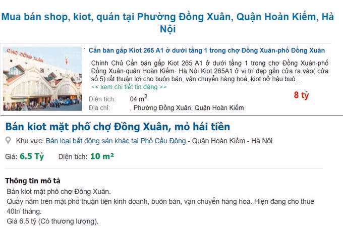Các ki ốt chỉ rộng khoảng vài m2 ở mặt tiền tầng 1 chợ Đồng Xuân có thể lên đến 4-5 tỷ đồng. Tuy vậy, rất ít người bán ra mà chủ yếu giữ lại để kinh doanh, hễ hở ra là có người mua ngay.