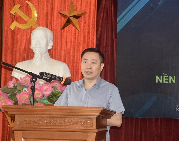 Ông Trần Đắc Trung, Phó Trưởng Ban quản lý CNC Hoà Lạc phát biểu tại toạ đàm “Xúc tiến chuyển giao công nghệ gắn với bảo vệ và phát triển tài sản trí tuệ”.