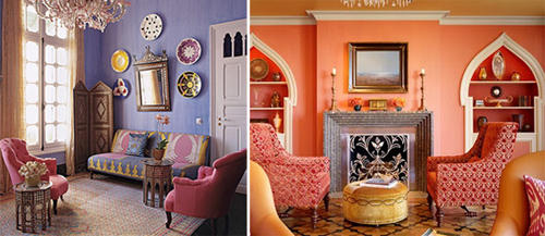 Các màu thường được sử dụng là xanh, cam, vàng, đỏ lấy từ màu tự nhiên của đất nước Ma-rốc. Trong khi đó, kiểu dáng và cách bài trí nội thất là sự pha trộn của phong cách Ả-rập, Pháp và Tây Ban Nha.