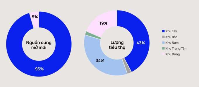 Nửa đầu năm 2023, khu Tây chiếm 95% nguồn cung sơ cấp mở mới và 43% lượng tiêu thụ căn hộ trong quý 1/2023.
