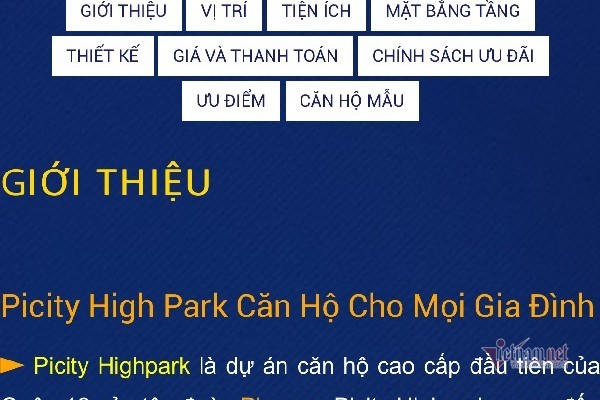 Được biết, dự án Picity High Park đã được phê duyệt chi tiết 1/500 vào tháng 5/2014 và được điều chỉnh quy hoạch vào tháng 12/2018. Dự án có tổng diện tích hơn 8,6ha, gồm 5 block chung cư.