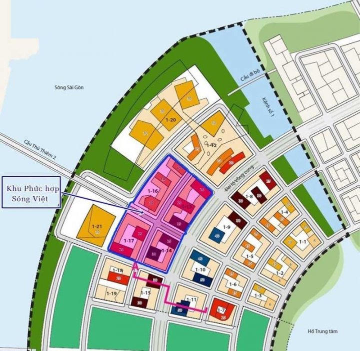 Vị trí dự án Khu phức hợp Sóng Việt tại Khu chức năng số 1 - Khu đô thị mới Thủ Thiêm.