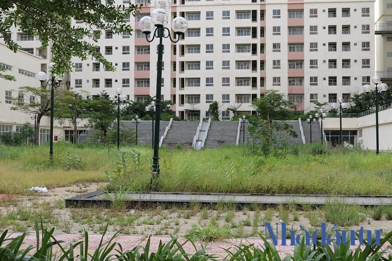 Do không có cư dân đến sinh sống nên khu tái định cư này đã bị bỏ hoang hơn 4 năm nay, khiến cỏ dại mọc um tùm lan vào các căn hộ.