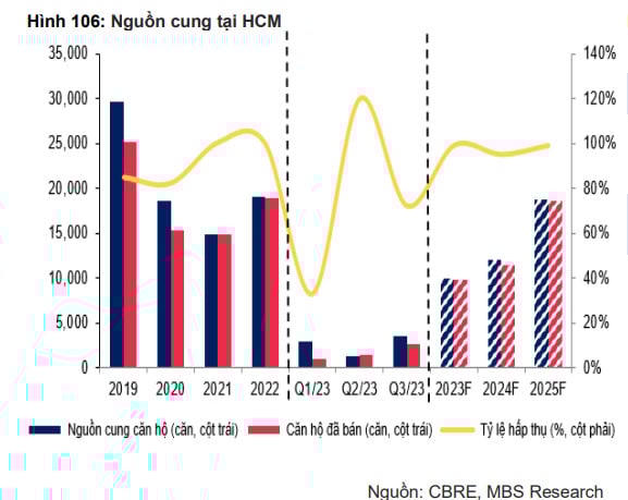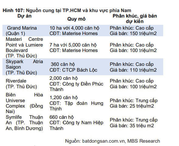 MBS cho rằng khu vực phía Đông sẽ là tâm điểm thu hút sự chú ý của thị trường bất động sản TP. HCM nhờ nguồn cung và hạ tầng cải thiện. Nguồn cung trong giai đoạn 2024-2025 sẽ tập trung chủ yếu tại TP. Thủ Đức với các dự án căn hộ cao cấp của chủ đầu tư lớn như Materise hay Vinhomes.
