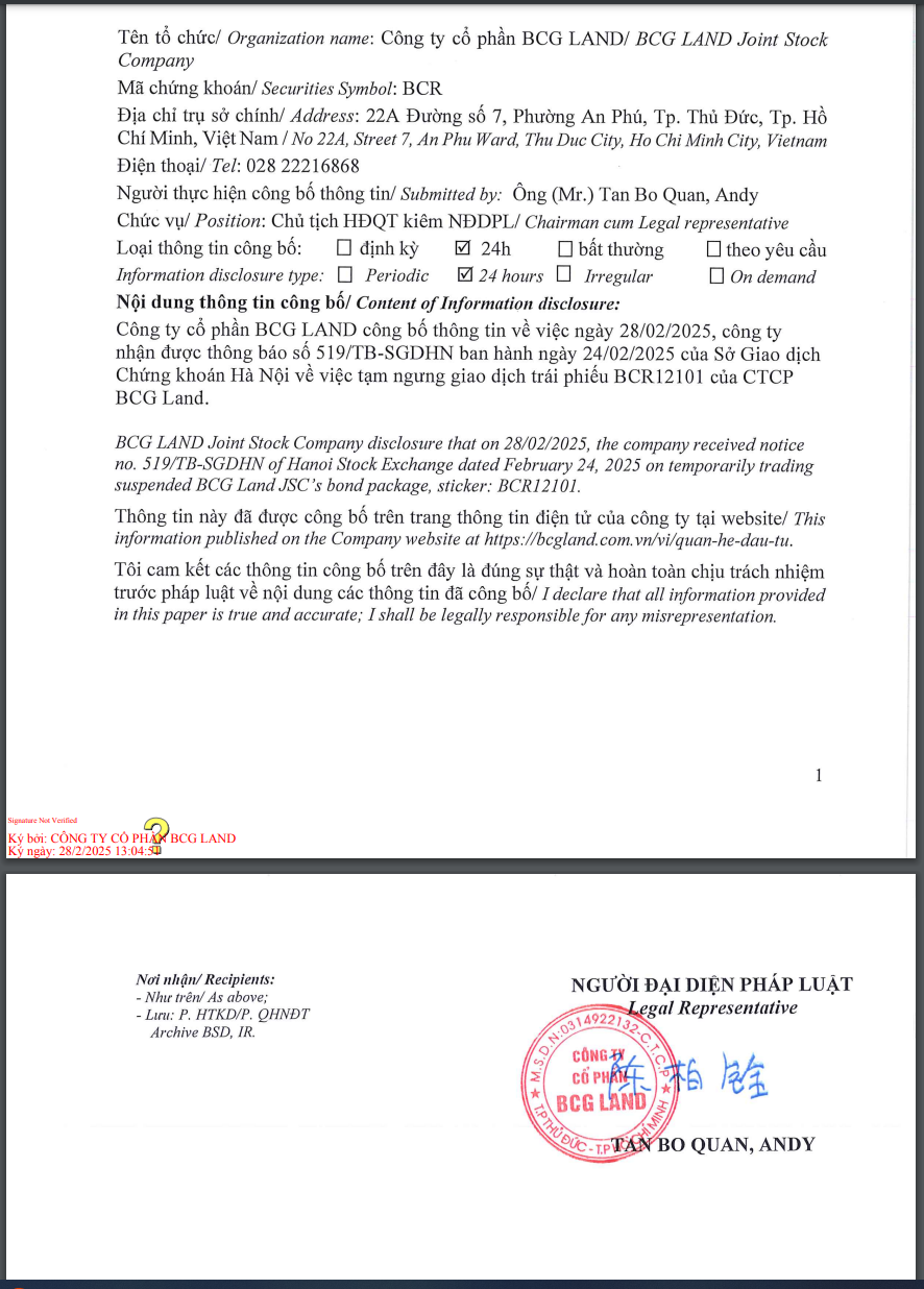 BCG cũng cam kết minh bạch thông tin theo quy định pháp luật để bảo vệ quyền lợi cổ đông. Dù vậy, sự kiện này vẫn gây xáo trộn nhất định trên thị trường, đặc biệt khi cổ phiếu BCG từng chịu áp lực lớn trong quá khứ do biến động chung của thị trường chứng khoán.