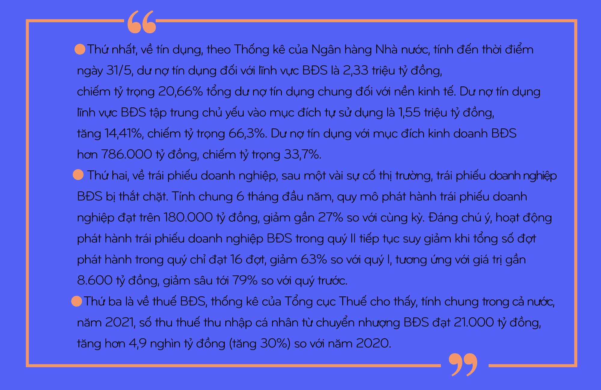 Tuy nhiên, trong 6 tháng đầu năm 2022, thị trường BĐS chứng kiến trạng thái kẹt thanh khoản cục bộ. Theo đó 3 xung lực chính về tài chính tiền tệ vào BĐS được kiểm soát chặt chẽ hơn.
