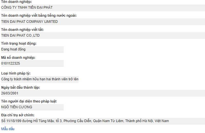 Ông Ngô Tiến Cương là người đại diện pháp luật