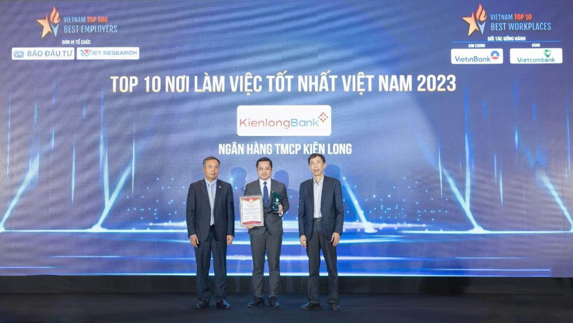 Ngân hàng TMCP Kiên Long (KienlongBank) được vinh danh Top 10 Nơi làm việc tốt nhất Việt Nam ngành Ngân hàng do Công ty Cổ phần Nghiên cứu Kinh doanh Việt Nam (Viet Research) phối hợp cùng Báo Đầu tư công bố vào ngày 8/12/2023 vừa qua.