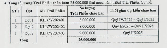 Ngân hàng TMCP Kiên Long (KienlongBank - mã chứng khoán KLB) dự kiến phát hành trái phiếu đợt 2 với tổng giá trị 800 tỷ đồng, trong khoảng thời gian từ quý 1/2025 đến quý 2/2025.