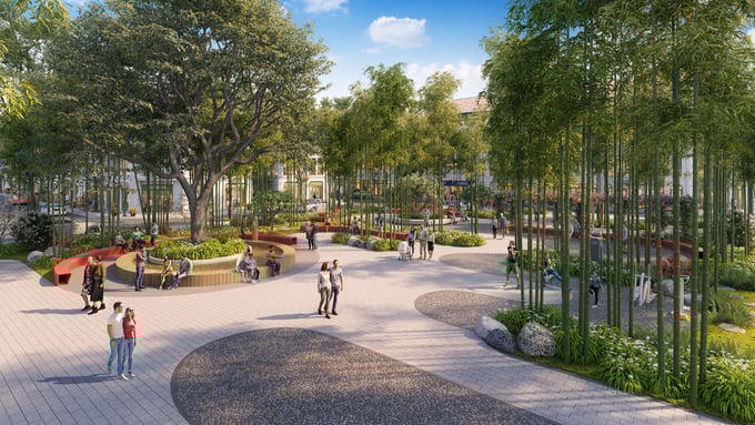 Ngay trung tâm phân khu là không gian cảnh quan xanh mát của Vườn tre. Những tán tre rì rào, lối đi dạo đan xen giữa sắc xanh và ánh sáng tự nhiên tạo nên trải nghiệm sống gần gũi thiên nhiên, đồng thời giữ được sự yên tĩnh quý giá giữa lòng đô thị. Không đơn thuần là mảng xanh tô điểm, Sun Group đã kiến tạo Vườn tre thành một không gian trải nghiệm sống động đa chiều với sân chơi trẻ em, ghế nghỉ dưới gốc đa, vườn thể dục… để cả gia đình thêm không gian sum vầy, gắn kết giữa thiên nhiên.