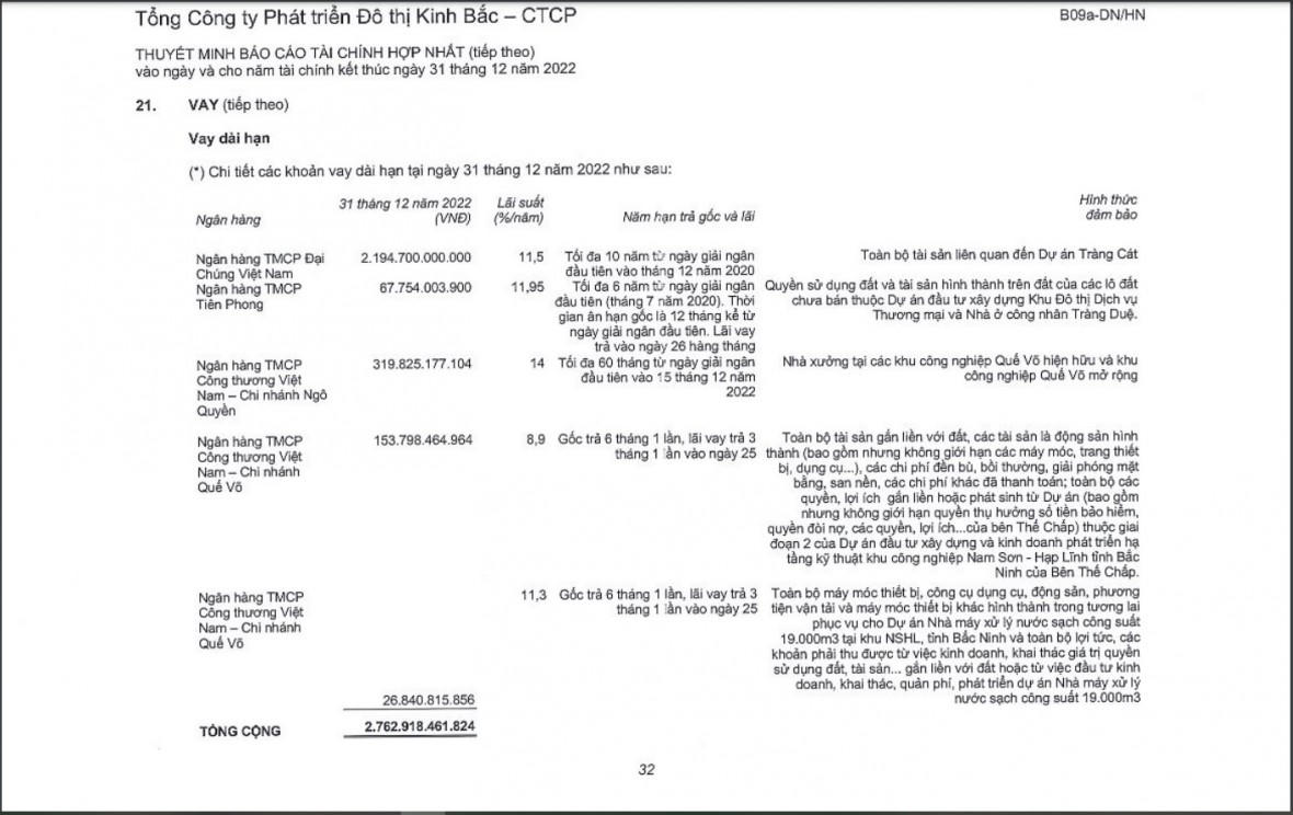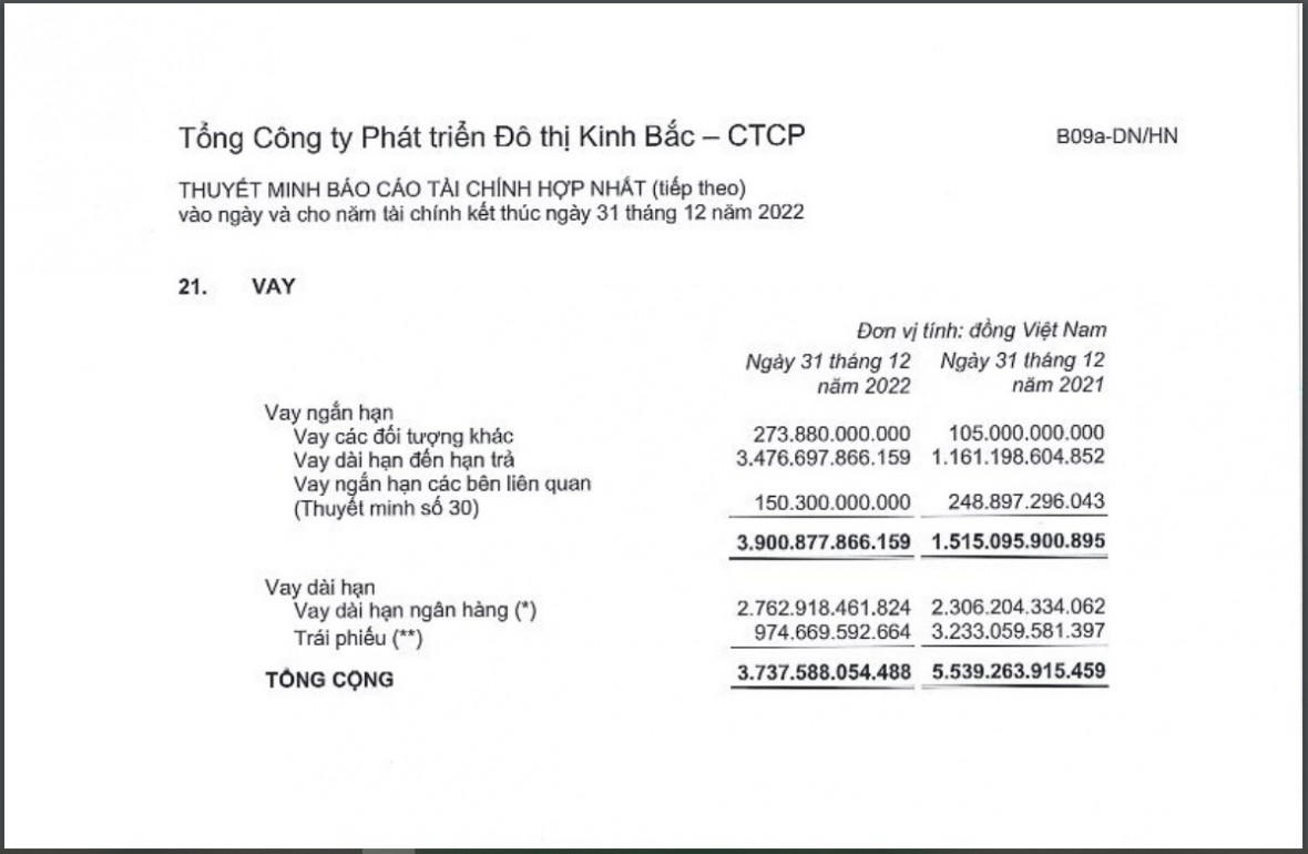 Theo công bố, KBC đã vốn hóa chi phí đi vay tổng cộng 293.9 tỷ đồng trong năm 2022. Các khoản chi phí đi vay này liên quan đến khoản vay để đầu tư xây dựng phát triển KCN Nam Sơn Hạp Lĩnh, Khu đô thị Phúc Ninh, KCN và khu đô thị Tràng Duệ, Khu đô thị Tràng Cát và một số dự án khác.