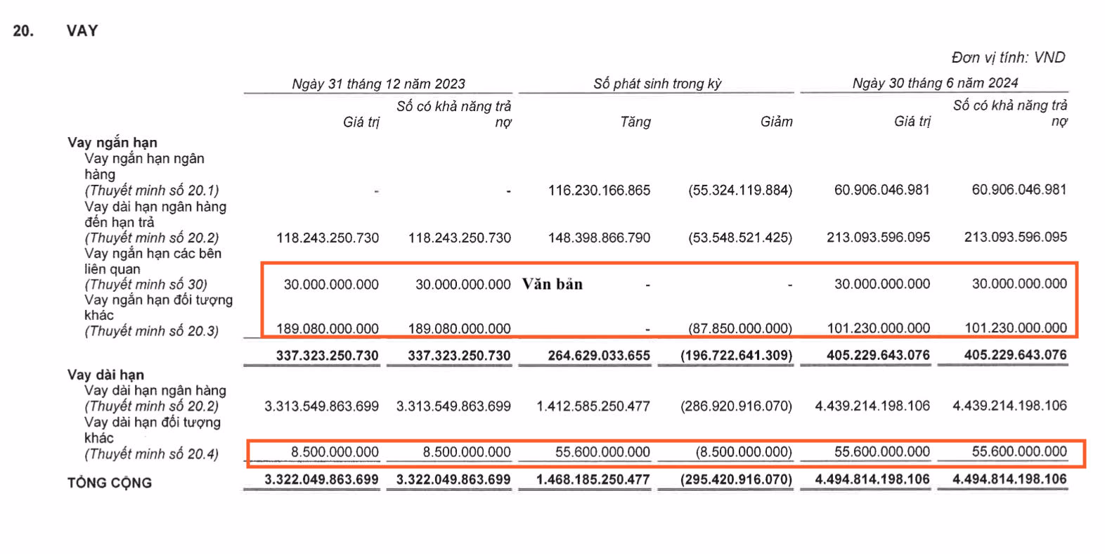 Tuy nhiên, tại báo cáo tài chính bán niên năm 2024 của KBC, tổng dư nợ vay của KBC đạt 4.494 tỷ đồng, trong đó, vay ngắn hạn, dài hạn ngân hàng là 4.731,2 tỷ đồng, vay ngắn hạn, dài hạn các bên có liên quan và các bên khác là 186,8 tỷ đồng.