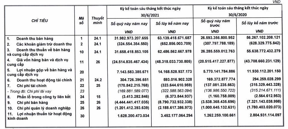 Lũy kế 6 tháng đầu năm 2021, MWG ghi nhận doanh thu thuần hợp nhất đạt gần 62.487 tỷ đồng, tăng 12% so với cùng kỳ. Lãi sau thuế đạt 2.551 tỷ đồng, tăng 26% so với cùng kỳ năm trước. So với kế hoạch năm, nhà bán lẻ thực hiện 50,4% chỉ tiêu doanh thu và 53,7% chỉ tiêu lợi nhuận sau thuế.