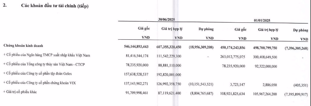 Giống như nhiều nhà đầu tư trên thị trường, MHC cũng tận dụng đòn bẩy tài chính thông qua các công ty chứng khoán. Tính đến cuối quý II/2025, công ty đang có hai khoản vay ngắn hạn: 60,1 tỷ đồng tại Công ty Chứng khoán VIX và 125 tỷ đồng tại Công ty Chứng khoán Mirae Asset.