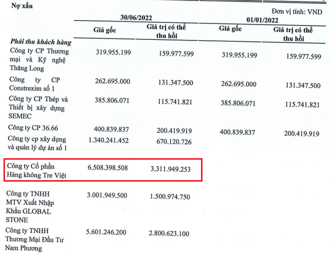 Cụ thể, FLC Stones có khoản phải thu 6,5 tỷ đồng nhưng giá trị có thể thu hồi chỉ hơn 3,3 tỷ đồng, tức phải trích lập dự phòng 3,2 tỷ đồng đối với hãng hàng không này.