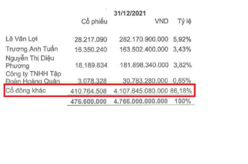 Cần lưu ý rằng, trước khi có sự xuất hiện của nhóm Louis, cơ cấu cổ đông HQC khá phân tán với hơn 86% vốn Công ty trôi nổi trên thị trường. Tính đến cuối năm 2021, Chủ tịch chỉ nắm 3,43% vốn, các bên liên quan cũng sở hữu khá ít.
