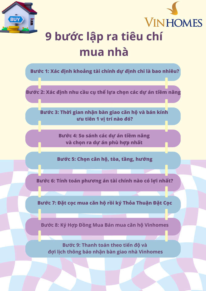 Về quy trình thủ tục pháp lý khi mua dự án Vinhomes, công ty đã hỗ trợ khách hàng khi lập ra lập ra 9 bước tiêu chí mua nhà, bao gồm: