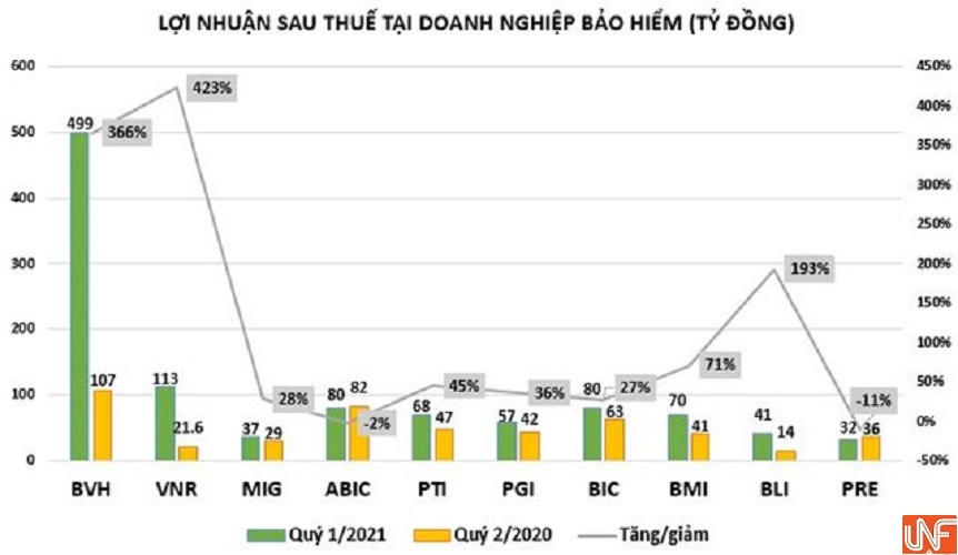Ngoài ra, còn nhiều doanh nghiệp bảo hiểm khác có lợi nhuận quý 1 tăng trưởng so với cùng kỳ.