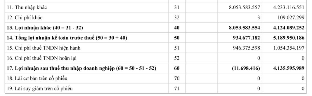 Sau khi trừ đi các chi phí, Công ty Kường Ngân báo lỗ sau thuế gần 12 triệu đồng, trong khi cùng kỳ năm 2022 báo lãi sau thuế hơn 4,1 tỷ đồng.