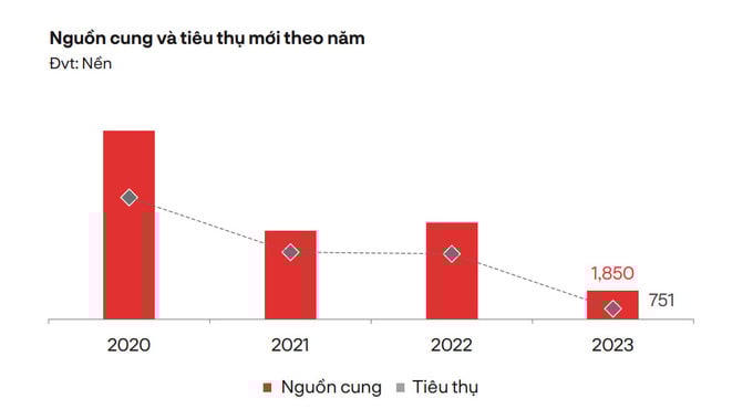 Theo ông Quang, năm 2023 giao dịch đất nền giảm mạnh vì nguồn cung dạng dự án phân khúc này cũng sụt giảm, giá một số nơi giảm khoảng 10-15%.