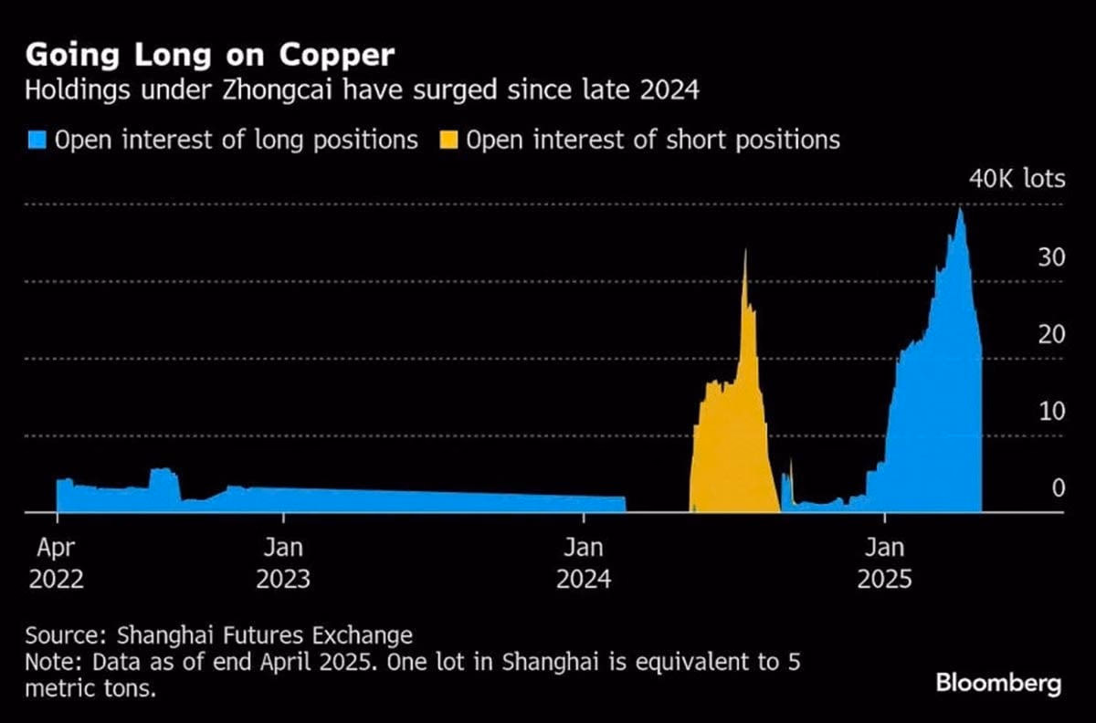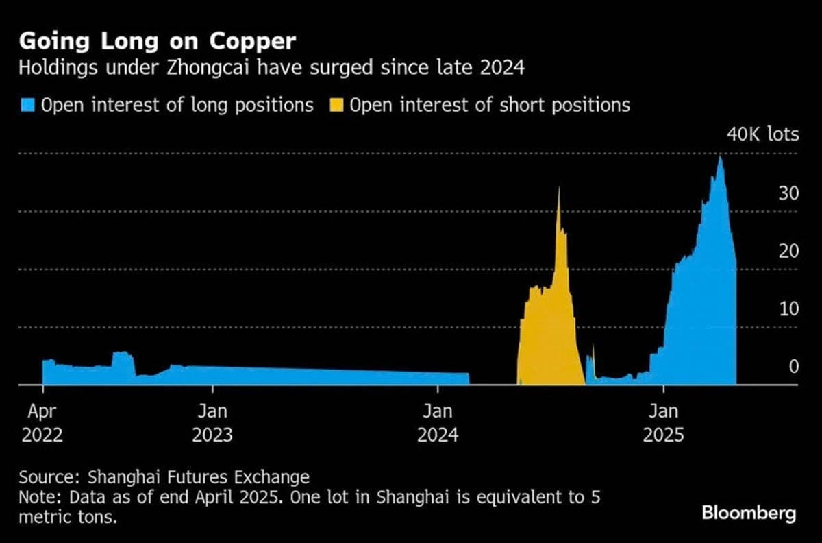 Thông qua công ty môi giới Zhongcai Futures, ông Bian đang nắm giữ vị thế mua ròng lớn nhất trên Sàn Giao dịch Hàng hóa Thượng Hải, với gần 90.000 tấn đồng theo dạng hợp đồng tương lai, vượt xa các đối thủ ở Trung Quốc.