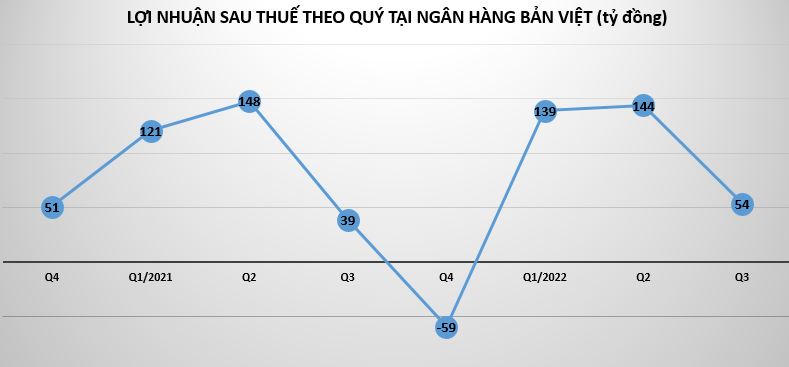 Kết quả, lợi nhuận thuần từ hoạt động kinh doanh giảm 13%, chỉ còn hơn 546 tỷ đồng. Thế nhưng, 9 tháng đầu năm Ngân hàng Bản Việt giảm trích lập dự phòng 49%, còn hơn 123 tỷ đồng, do đó vẫn báo lãi trước và sau thuế tăng 10%, đạt lần lượt hơn 423 tỷ đồng và gần 339 tỷ đồng.