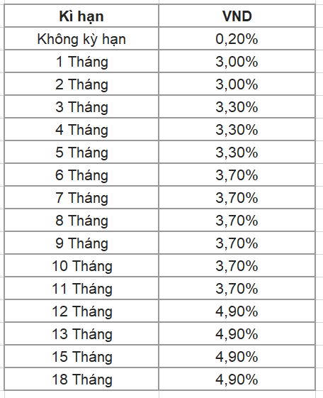 Còn đối với lãi suất tiền gửi tiết kiệm dành cho khách hàng doanh nghiệp tại ngân hàng Agribank cũng được giữ nguyên so với đầu tháng trước, dao động từ 3% /năm đến 4,9%/năm