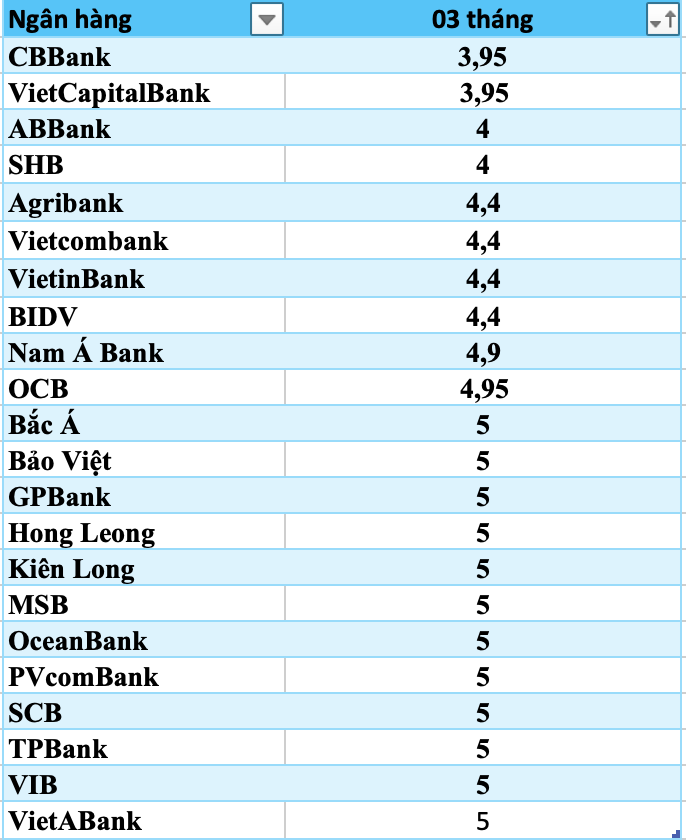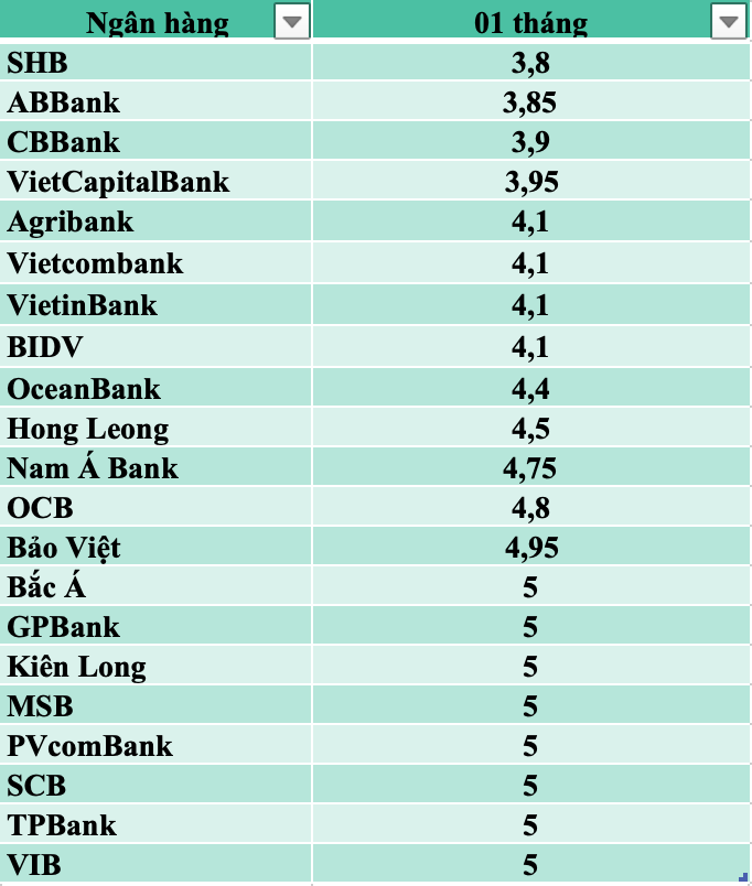 So sánh lãi suất huy động giữa các ngân hàng ở các kỳ hạn