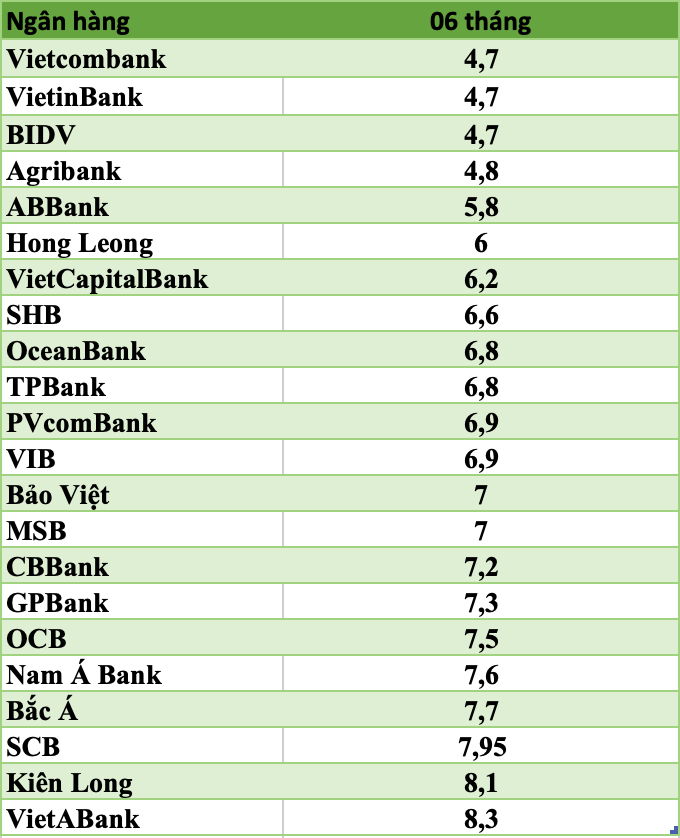 Cuộc đua lãi suất huy động đang ngày càng "nóng" khi có sự tham gia của cả 4 ngân hàng lớn có vốn Nhà nước là Ngân hàng TMCP Đầu tư và Phát triển Việt Nam (BIDV), Ngân hàng TMCP Ngoại thương Việt Nam (Vietcombank), Ngân hàng TMCP Công Thương Việt Nam (VietinBank) và Ngân hàng Nông nghiệp và Phát triển Nông thôn Việt Nam (Agribank). Lãi suất huy động cao nhất tại nhóm "Big 4" này là 6,4%/năm đối với hình thức gửi tiền tại quầy và lên tới 6,8%/năm với gửi tiền trực tuyến, kỳ hạn từ 12 tháng trở lên.