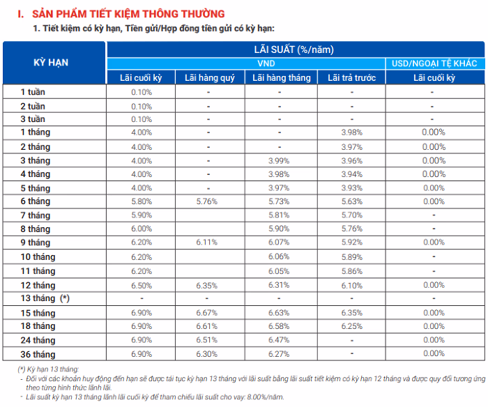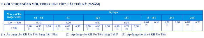 Ngân hàng VietinBank triển khai huy động vốn với thời gian linh động từ 1 tháng đến 36 tháng và trên 36 tháng. Phạm vi lãi suất niêm yết cho các kỳ hạn này cũng nằm trong khoảng từ 3,1%/năm đến 5,6%/năm. Nếu khách hàng đăng ký gửi tiết kiệm tại kỳ hạn từ 12 tháng trở lên sẽ được nhận mức lãi cao nhất 5,6%/năm.