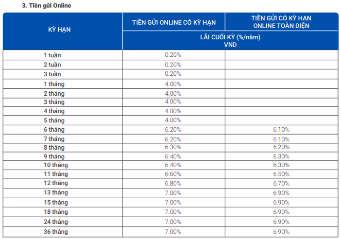 Hay tại Nam A Bank cũng đã tăng lãi suất tiết kiệm vào cuối tháng 8 đối với hình thức gửi online. Trong đó, kỳ hạn 9 tháng tăng thêm 0,3 điểm % lên mức 6,9%/năm.