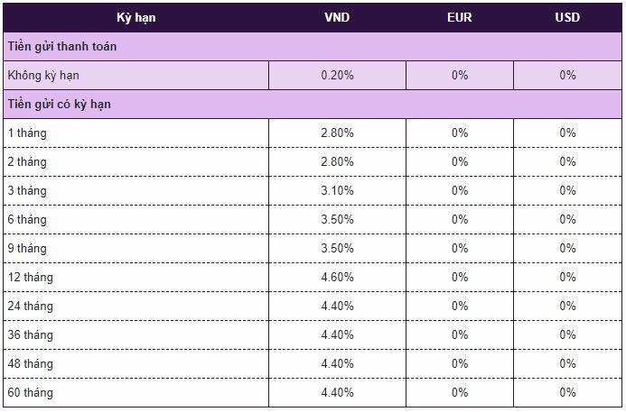 Biểu lãi suất tiền gửi ghi nhận được sau khi điều chỉnh nằm trong khoảng từ 2,8%/năm đến 4,4%/năm, triển khai tại kỳ hạn 1 - 60 tháng.