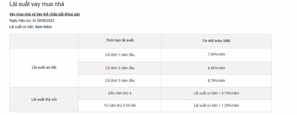 Lãi suất vay mua nhà trong tháng 9/2022 phần lớn ít có sự thay đổi. Có một ngân hàng tăng lãi suất thêm 1,5 điểm% lên mức 9,1%/năm với ưu đãi 3 năm đầu.